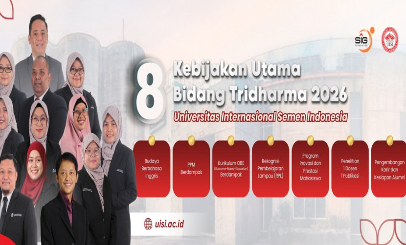 Universitas Internasional Semen Indonesia (UISI) secara resmi menetapkan delapan kebijakan utama Bidang Tridharma untuk tahun 2026 sebagai langkah strategis dalam memperkuat kualitas pendidikan, penelitian, dan pengabdian kepada masyarakat.